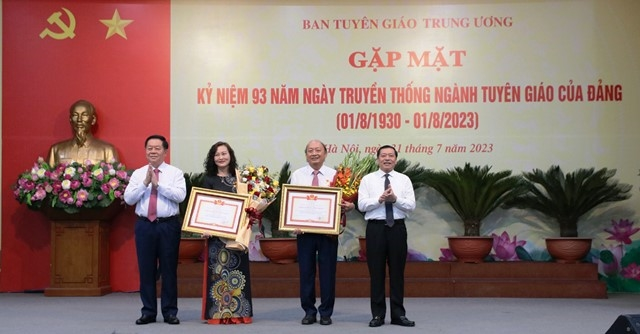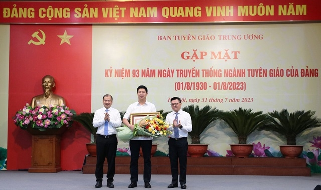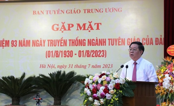 Ngày 31/7, tại Hà Nội, Ban Tuyên giáo Trung ương tổ chức gặp mặt kỷ niệm 93 năm Ngày truyền thống ngành Tuyên giáo của Đảng (1/8/1930 - 1/8/2023). Đồng chí Nguyễn Trọng Nghĩa, Bí thư Trung ương Đảng, Trưởng Ban Tuyên giáo Trung ương dự và phát biểu tại buổi gặp mặt.