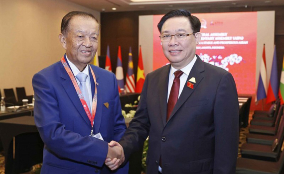 Chủ tịch Quốc hội Vương Đình Huệ gặp Chủ tịch Quốc hội Vương quốc Thái Lan Wan Muhamad Noor Matha. (Ảnh: Doãn Tấn/TTXVN).