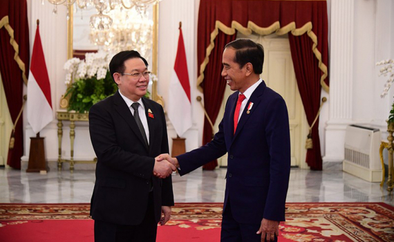 Tổng thống Joko Widodo nồng nhiệt chào mừng và đánh giá cao ý nghĩa chuyến thăm Indonesia của Chủ tịch Quốc hội nhân dịp kỷ niệm 10 năm thiết lập quan hệ Đối tác Chiến lược Việt Nam-Indonesia (2013-2023), giúp tạo động lực đưa hợp tác hai nước phát triển ngày càng sâu rộng, thực chất; nhấn mạnh quan hệ Đối tác Chiến lược Indonesia-Việt Nam không chỉ mang lại lợi ích cho hai nước mà còn đóng góp cho hòa bình, ổn định, thịnh vượng của khu vực.