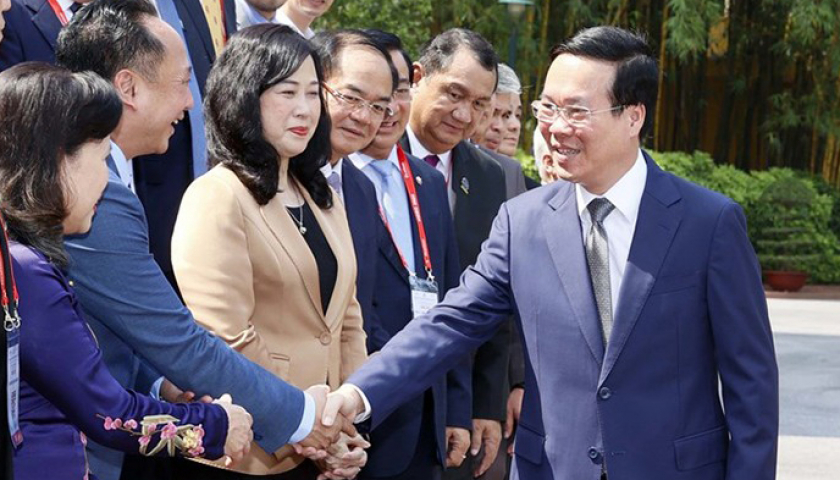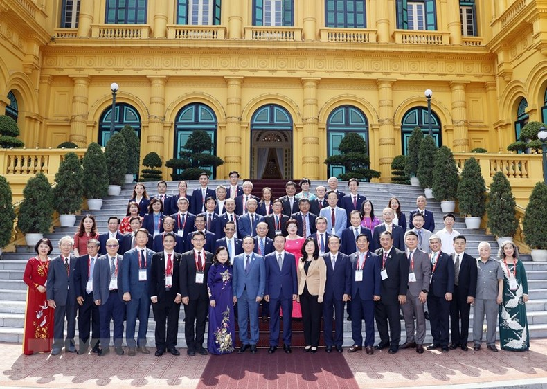 Chủ tịch nước Võ Văn Thưởng với các đại biểu. (Ảnh: TTXVN).