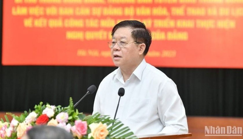 Đồng chí Trưởng Ban Tuyên giáo Trung ương nhấn mạnh, để hoạt động văn hóa thực sự có hiệu quả, cần phải rà soát, điều chỉnh, bổ sung chính sách, nâng cao hiệu quả của các thiết chế văn hóa cơ sở, nhất là ở các khu công nghiệp, khu đô thị mới; bảo tồn và phát huy các giá trị di sản, văn hóa tốt đẹp của các dân tộc, gắn với triển khai các Nghị quyết của Bộ Chính trị về phát triển kinh tế-xã hội, bảo đảm quốc phòng, an ninh ở 6 vùng kinh tế-xã hội của cả nước, phù hợp đặc thù vùng, miền, dân tộc, tôn giáo…