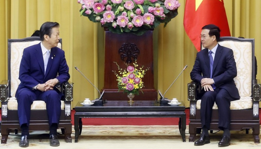 Chủ tịch nước Võ Văn Thưởng tiếp Chủ tịch Đảng Công minh Nhật Bản Yamaguchi Natsuo. (Ảnh: Thống Nhất/TTXVN).