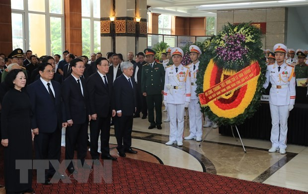 Đoàn đại biểu Ban Chấp hành Trung ương Đảng do đồng chí Trương Thị Mai, Ủy viên Bộ Chính trị, Thường trực Ban Bí thư, Trưởng Ban Tổ chức Trung ương dẫn đầu, viếng Phó Thủ tướng Lê Văn Thành.