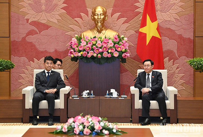 Chủ tịch Quốc hội Vương Đình Huệ phát biểu tại buổi tiếp Chủ tịch Đảng Dân chủ lập hiến Nhật Bản Izumi Kenta. (Ảnh: Duy Linh).
