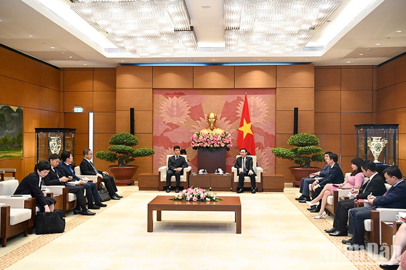 Chủ tịch Quốc hội Vương Đình Huệ tiếp Chủ tịch Đảng Dân chủ Lập hiến Nhật Bản