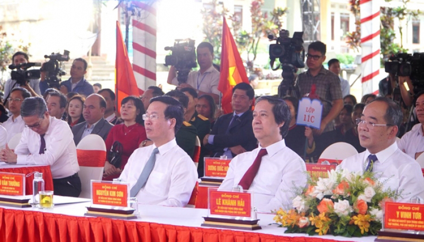 Chủ tịch nước Võ Văn Thưởng và các đại biểu dự Lễ khai giảng năm học 2023-2024 tại Trường PTDTNT tỉnh Gia Lai, sáng 05/9/2023.