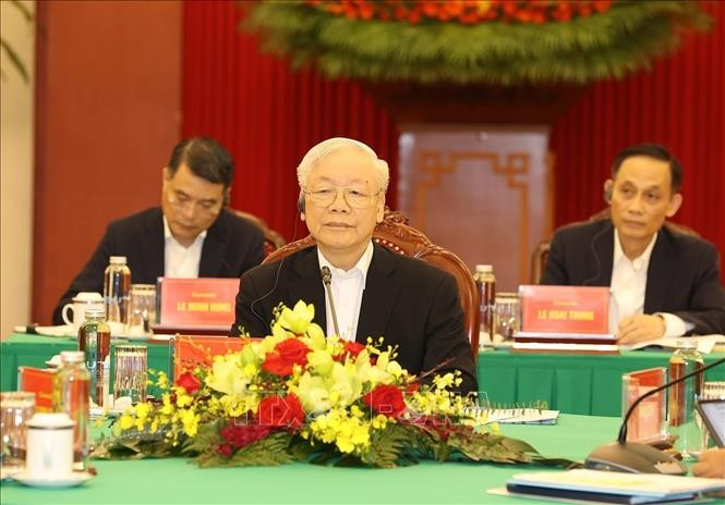 Tổng Bí thư Nguyễn Phú Trọng phát biểu tại cuộc gặp. (Ảnh: TTXVN).