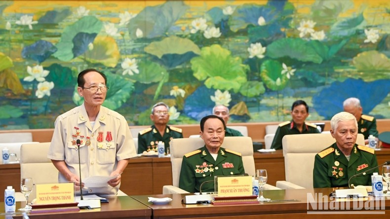 Chủ tịch Hội chiến sĩ bị địch bắt, tù đày tỉnh Nghệ An Nguyễn Trọng Thành báo cáo tại buổi gặp mặt.