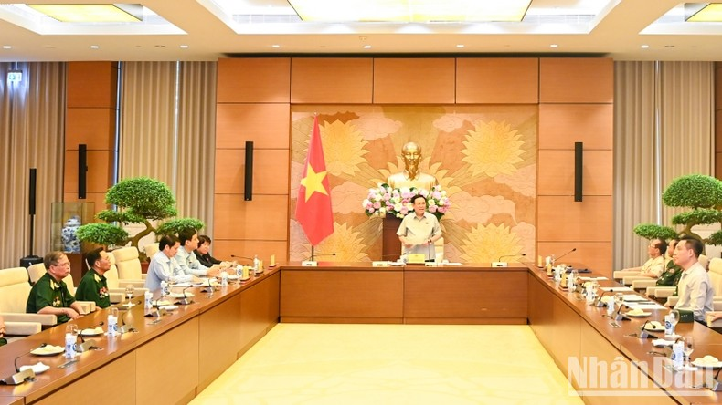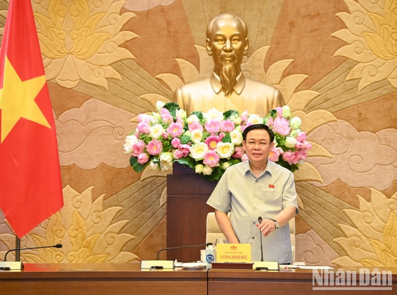 Chủ tịch Quốc hội Vương Đình Huệ phát biểu tại buổi gặp mặt.