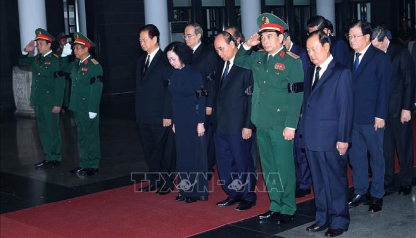 Đoàn đại biểu Ban Chấp hành Trung ương Đảng do Ủy viên Bộ Chính trị, Thường trực Ban Bí thư, Trưởng ban Tổ chức Trung ương Trương Thị Mai dẫn đầu vào viếng và chia buồn cùng gia quyến. Nguyên Chủ tịch nước Nguyễn Xuân Phúc, nguyên Thủ tướng Nguyễn Tấn Dũng... tham gia đoàn viếng.