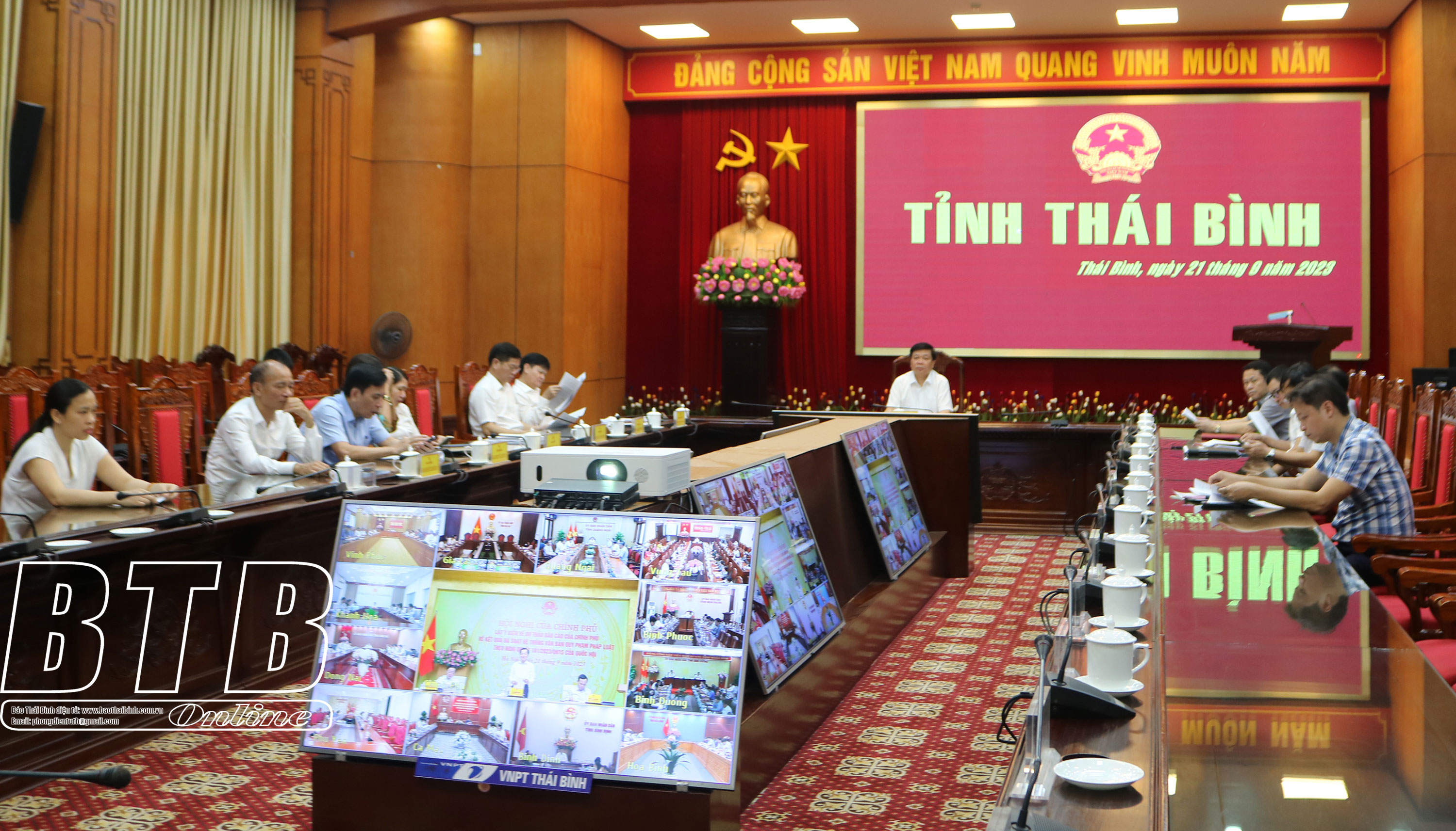 Các đại biểu tham dự hội nghị tại điểm cầu Thái Bình.