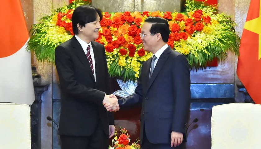Chủ tịch nước Võ Văn Thưởng tiếp đón Hoàng Thái tử Nhật Bản Akishino. (Ảnh: THỦY NGUYÊN).