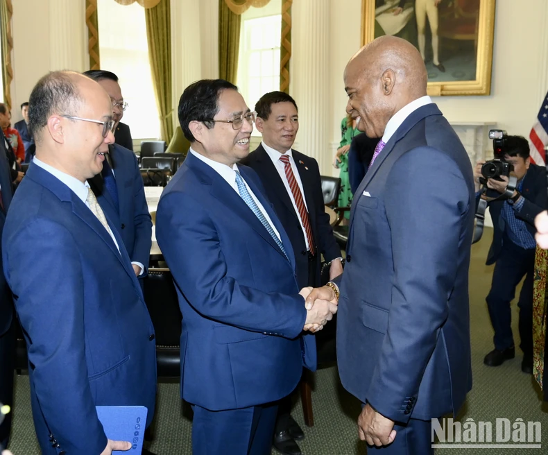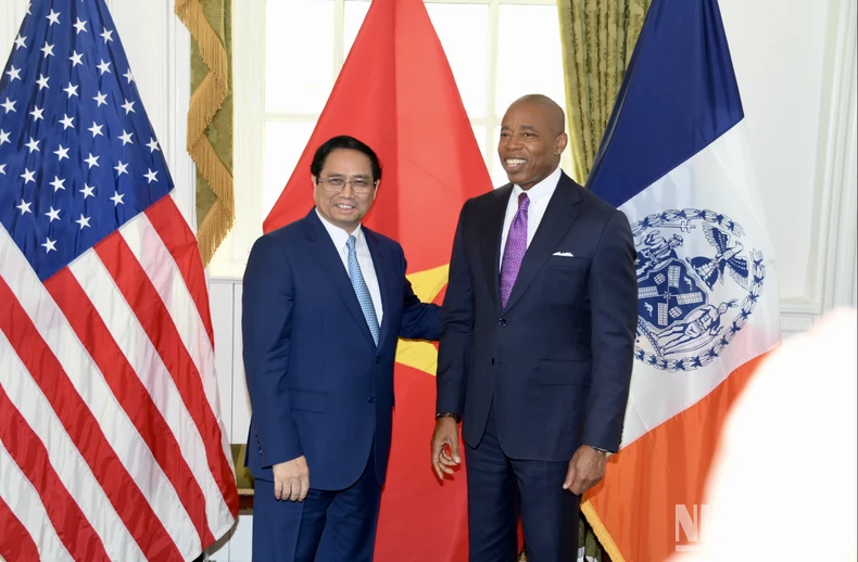 Thị trưởng thành phố New York Eric Adams nhiệt liệt chào mừng và bày tỏ vinh dự được đón Thủ tướng Chính phủ Phạm Minh Chính và đoàn đại biểu cấp cao Việt Nam tới thăm thành phố New York trong bối cảnh hai nước vừa nâng cấp quan hệ lên Đối tác chiến lược toàn diện vì hòa bình, hợp tác và phát triển bền vững nhân chuyến thăm Việt Nam lịch sử của Tổng thống Hoa Kỳ Joe Biden vừa qua.