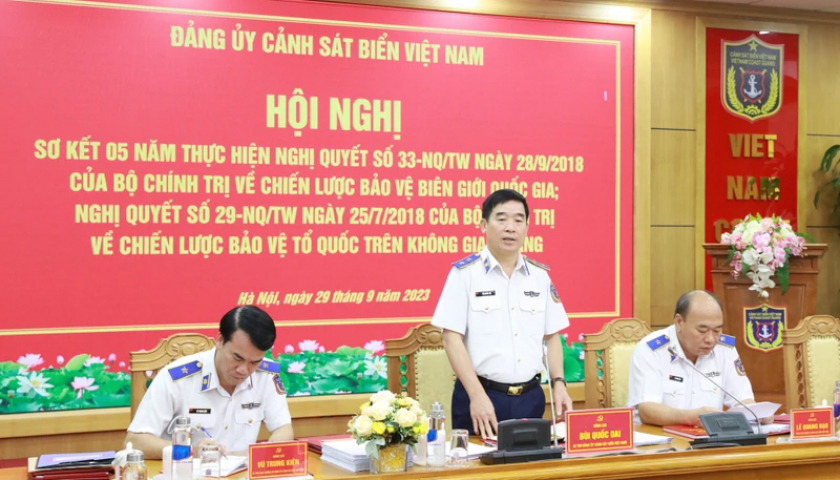 Phát biểu kết luận hội nghị, Trung tướng Bùi Quốc Oai nhấn mạnh, trong thời gian tới, Đảng ủy Cảnh sát biển Việt Nam tiếp tục quán triệt, nắm vững các mục tiêu, quan điểm, nguyên tắc, phương châm chỉ đạo, nhiệm vụ và các giải pháp của Nghị quyết số 33 của Bộ Chính trị; giữ vững và tăng cường sự lãnh đạo tuyệt đối, trực tiếp về mọi mặt của Đảng, nâng cao hiệu lực, hiệu quả quản lý của Nhà nước trong xây dựng, quản lý và bảo vệ biên giới quốc gia; nâng cao chất lượng hiệu quả công tác nắm, dự báo đúng, trúng, kịp thời về quân sự, quốc phòng, thực thi pháp luật trên biển; xây dựng thế trận quốc phòng toàn dân gắn với thế trận an ninh nhân dân, thế trận lòng dân trên biển vững chắc; xây dựng lực lượng Cảnh sát biển Việt Nam “Cách mạng, chính quy, tinh nhuệ, hiện đại”; tiếp tục nâng cao hiệu quả công tác hội nhập quốc tế và đối ngoại Cảnh sát biển.