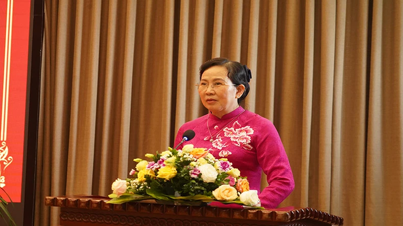 Đồng chí Lê Thị Thủy, Ủy viên Trung ương Đảng, Bí thư Tỉnh ủy Hà Nam phát biểu chào mừng tại kỳ họp.
