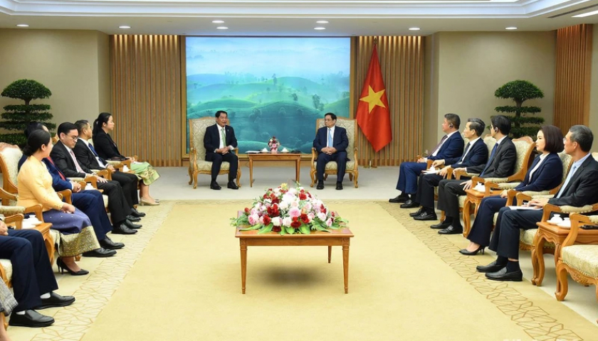 Thủ tướng Chính phủ Phạm Minh Chính tiếp đồng chí Atsaphangthong Siphandone, Đô trưởng Viêng Chăn (Lào) (Ảnh: TRẦN HẢI).