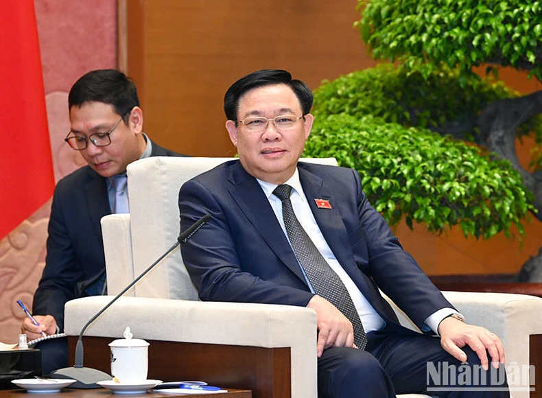 Chủ tịch Quốc hội Vương Đình Huệ phát biểu tại buổi tiếp.