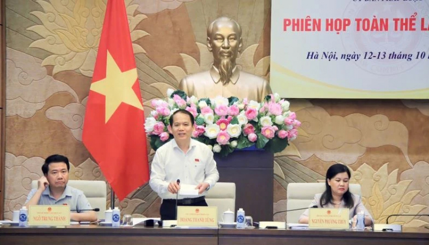 Đồng chí Hoàng Thanh Tùng, Ủy viên Trung ương Đảng, Chủ nhiệm Ủy ban Pháp luật chủ trì phiên họp.