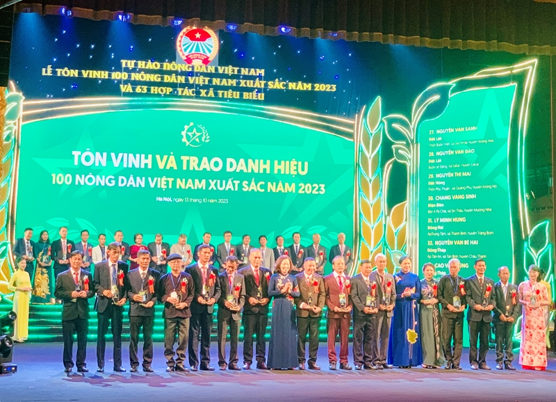 Tối 13/10, tại Nhà hát Lớn (Hà Nội), nhân kỉ niệm 93 năm thành lập Hội Nông dân Việt Nam (14/10/1930- 14/10/2023) và hướng tới chào mừng Đại hội Đại biểu toàn quốc Hội Nông dân Việt Nam lần thứ VIII (nhiệm kỳ 2023-2028), nằm trong khuôn khổ Chương trình Tự hào Nông dân Việt Nam năm 2023, Trung ương Hội Nông dân Việt Nam chủ trì, phối hợp với Ban Tuyên giáo Trung ương, Bộ Nông nghiệp và Phát triển nông thôn, Bộ Công Thương tổ chức Lễ Tôn vinh và trao Danh hiệu 100 nông dân Việt Nam xuất sắc năm 2023 và biểu dương 63 hợp tác xã (HTX) tiêu biểu toàn quốc. Sự kiện được truyền hình trực tiếp trên Đài Truyền hình Việt Nam - VTV.