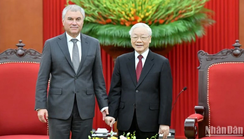 Tổng Bí thư Nguyễn Phú Trọng tiếp Chủ tịch Duma Quốc gia Liên bang Nga