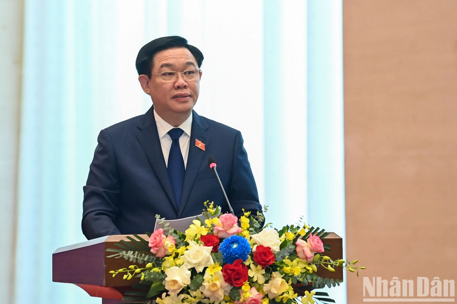 Chủ tịch Quốc hội Vương Đình Huệ phát biểu khai mạc phiên họp. (Ảnh: Duy Linh).