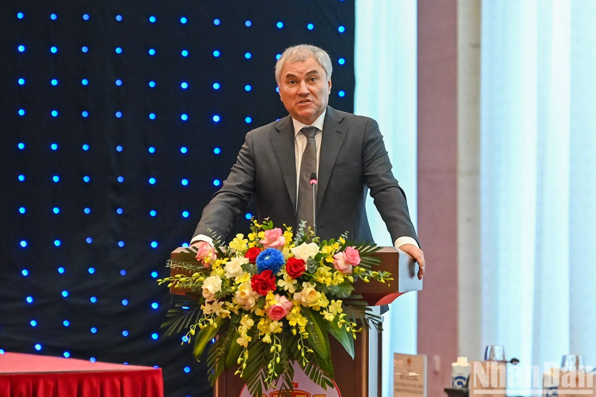 Chủ tịch Duma Quốc gia Quốc hội Liên bang Nga Vyacheslav Viktorovich Volodin phát biểu khai mạc phiên họp. (Ảnh: Duy Linh).