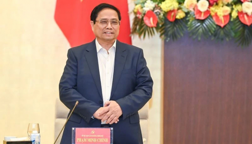 Bí thư Ban Cán sự Đảng Chính phủ, Thủ tướng Chính phủ Phạm Minh Chính phát biểu tại hội nghị. (Ảnh Duy Linh).