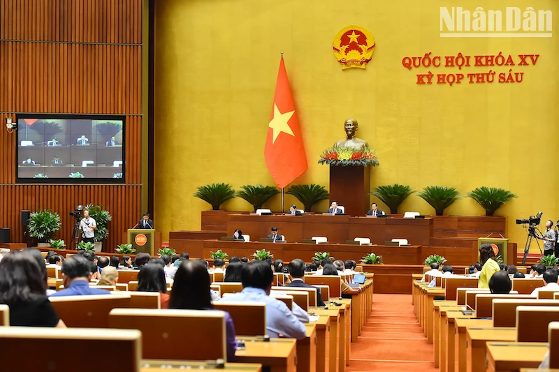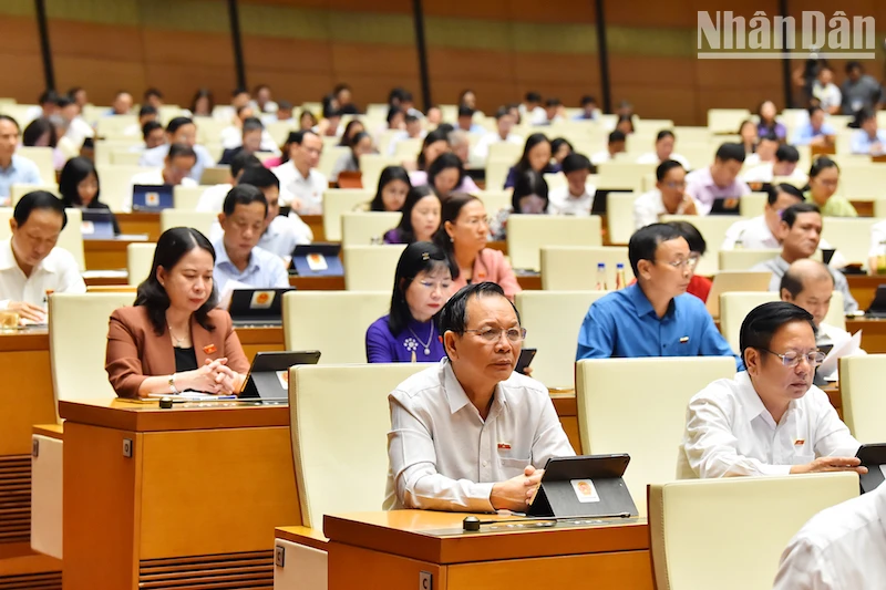 Đại biểu Quốc hội nghe Tờ trình và thẩm tra về việc điều chỉnh một số nội dung liên quan tới việc thu hồi đất, bồi thường, hỗ trợ, tái định cư Cảng hàng không quốc tế Long Thành. (Ảnh: Thuỷ Nguyên).