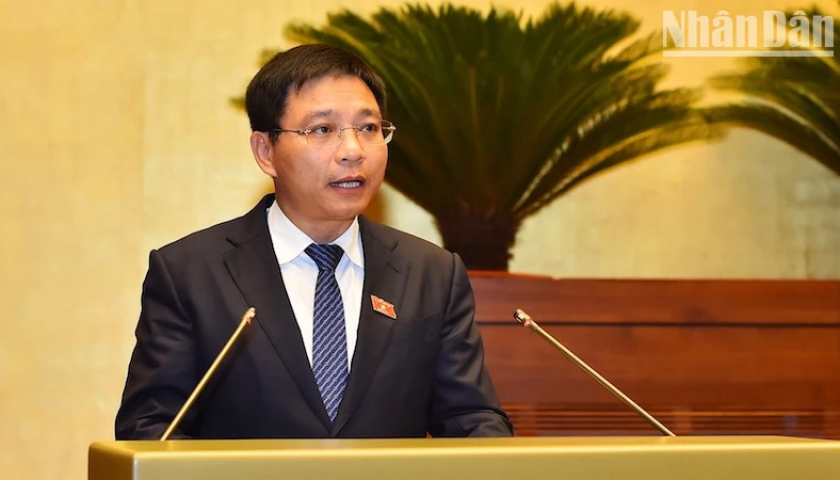 Bộ trưởng Giao thông vận tải Nguyễn Văn Thắng trình bày trước Quốc hội. (Ảnh: Thuỷ Nguyên).