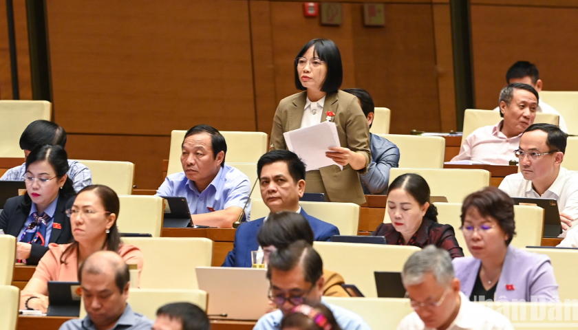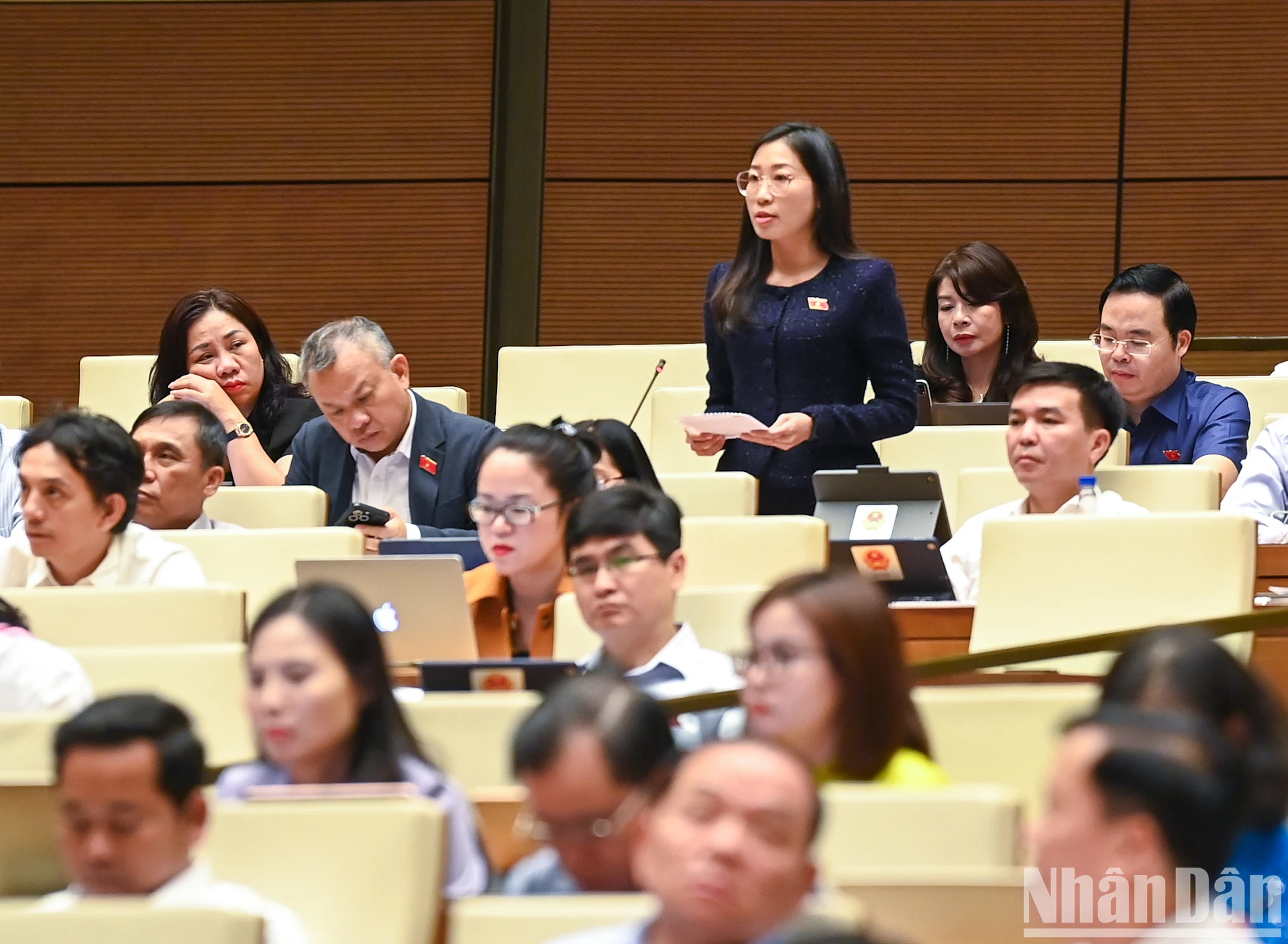 Đại biểu Nguyễn Thị Việt Nga (Hải Dương) phát biểu. (Ảnh: DUY LINH).