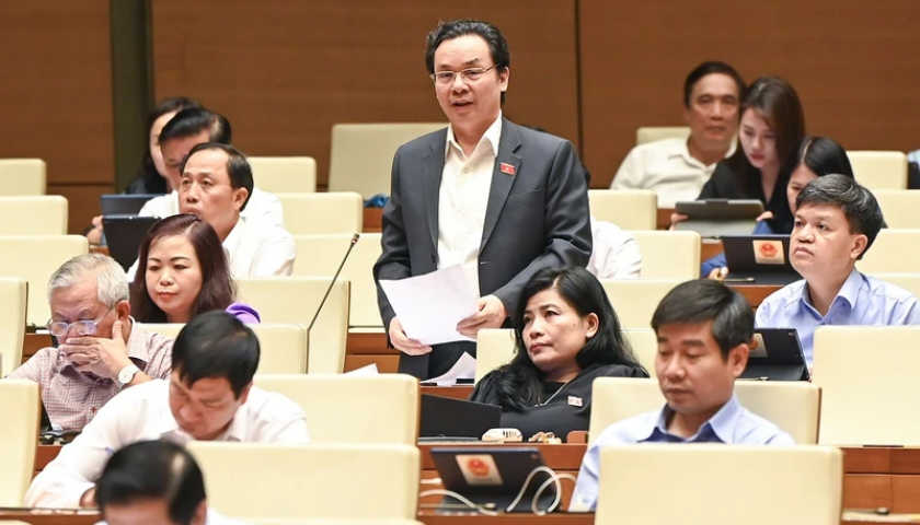 Đại biểu Hoàng Văn Cường (đoàn Hà Nội) cho ý kiến về dự thảo Luật Kinh doanh bất động sản (sửa đổi). (Ảnh: DUY LINH).