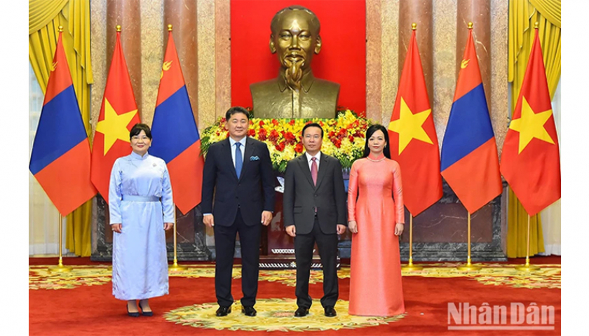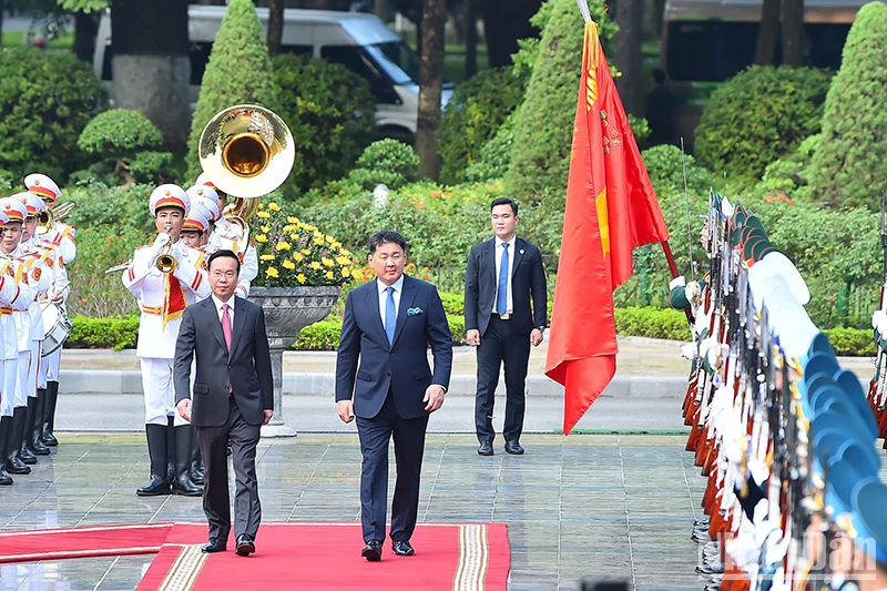 Chủ tịch nước Võ Văn Thưởng cùng Phu nhân chủ trì lễ đón Tổng thống Mông Cổ Ukhnaagiin Khurelsukh và Phu nhân