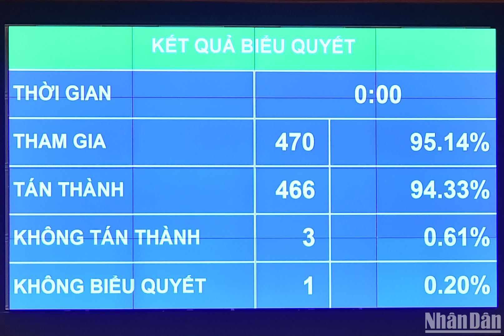 Kết quả biểu quyết thông qua Nghị quyết về dự toán ngân sách nhà nước năm 2024. (Ảnh: THỦY NGUYÊN).