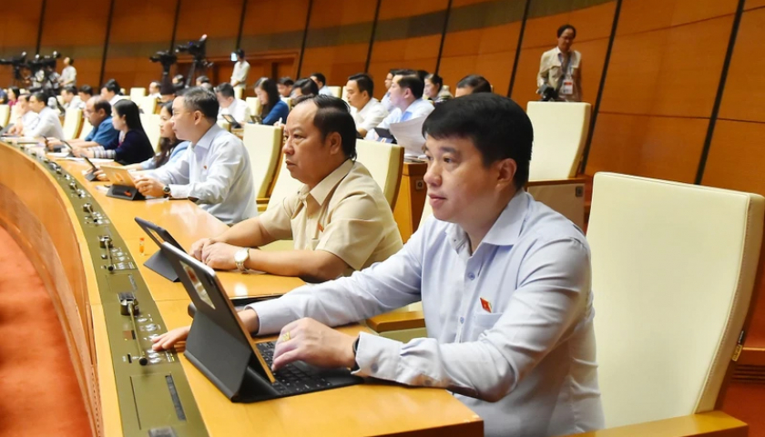 Các đại biểu Quốc hội biểu quyết thông qua Nghị quyết về dự toán ngân sách nhà nước năm 2024. (Ảnh: THỦY NGUYÊN).