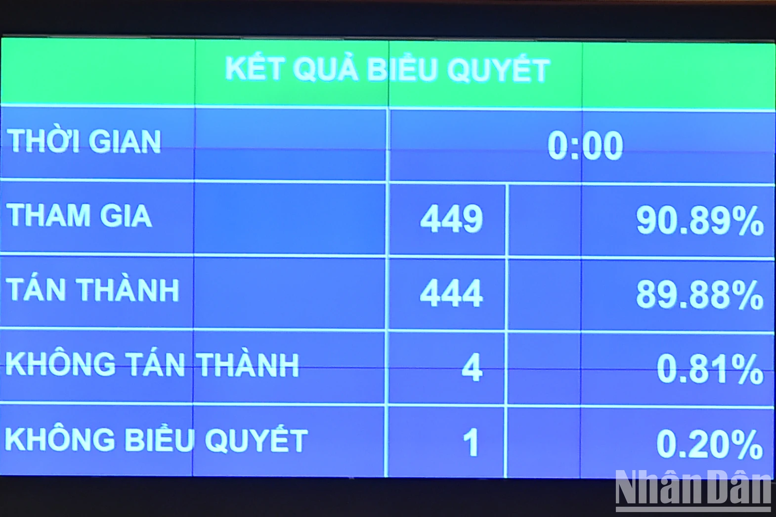 Kết quả biểu quyết điện tử thông qua Nghị quyết về phương án phân bổ ngân sách trung ương năm 2024. (Ảnh: THỦY NGUYÊN).