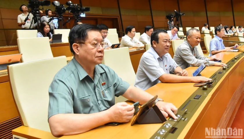 Quốc hội biểu quyết thông qua Nghị quyết về phương án phân bổ ngân sách trung ương năm 2024. (Ảnh: THỦY NGUYÊN).