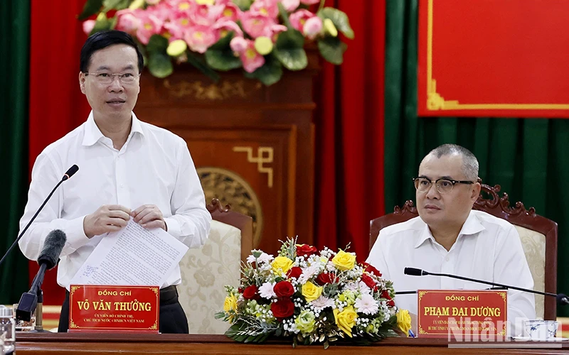 Chủ tịch nước Võ Văn Thưởng đề nghị, tỉnh cần quan tâm tiếp tục nâng cao năng lực lãnh đạo và sức chiến đấu của tổ chức Đảng các cấp, trong đó, cần chú trọng việc cụ thể các chủ trương, đường lối của Đảng, phù hợp tình hình địa phương.