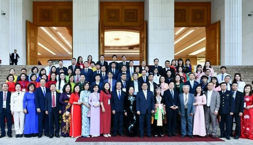 Thủ tướng Phạm Minh Chính với các nhà giáo, cán bộ quản lý giáo dục tiêu biểu.