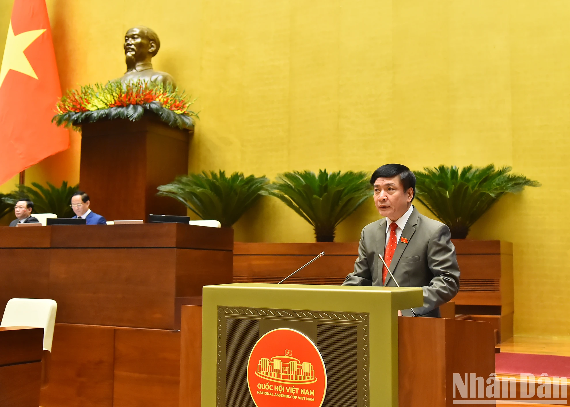 Tổng Thư ký Quốc hội, Chủ nhiệm Văn phòng Quốc hội Bùi Văn Cường trình bày Tờ trình về việc điều chỉnh chương trình Kỳ họp thứ 6, Quốc hội khóa XV. (Ảnh: THỦY NGUYÊN).