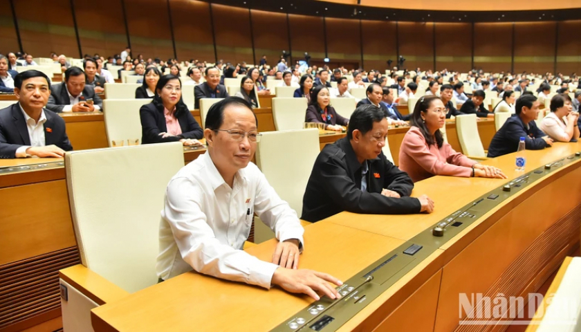 Quốc hội tiến hành biểu quyết thông qua việc điều chỉnh chương trình Kỳ họp thứ 6, Quốc hội khóa XV. (Ảnh: THỦY NGUYÊN).