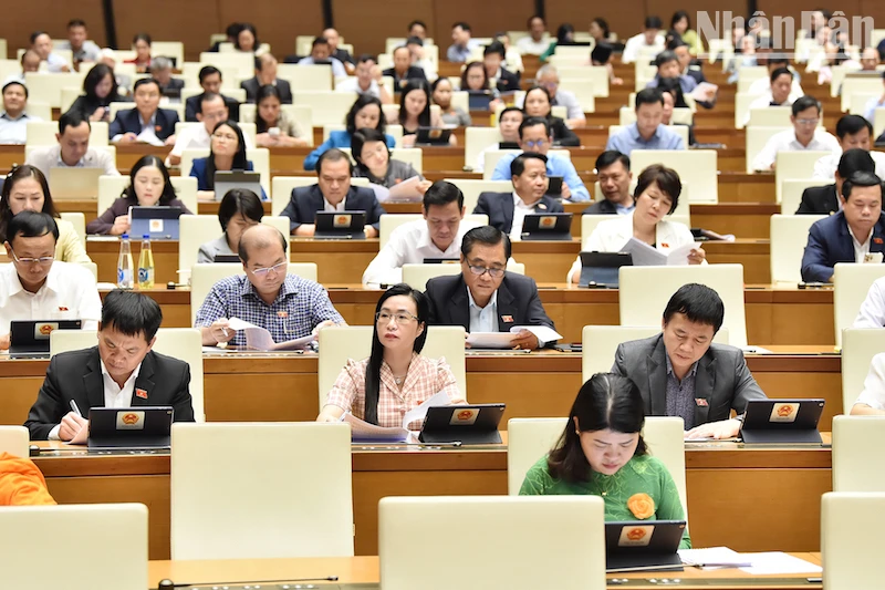 Các đại biểu Quốc hội lắng nghe báo cáo của Ủy ban Thường vụ Quốc hội.(Ảnh: THỦY NGUYÊN).
