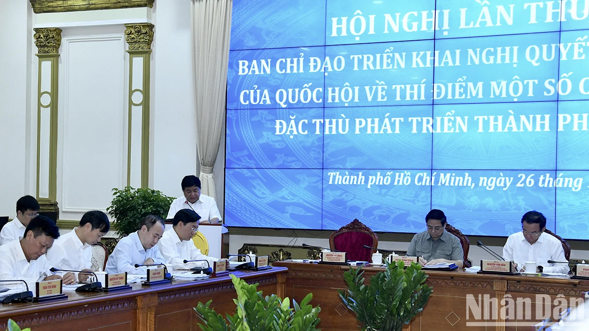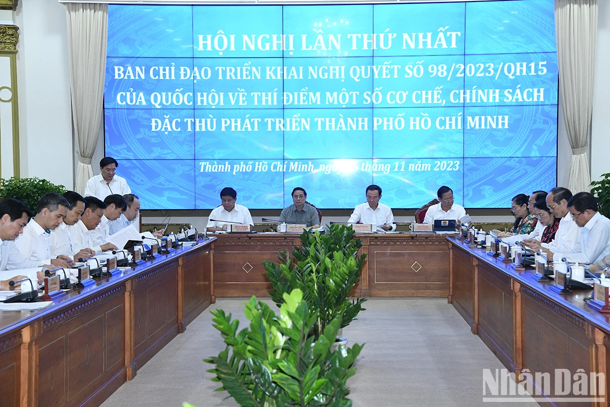 Nhân dịp này, Thủ tướng cũng cho ý kiến về các đề xuất, kiến nghị của thành phố liên quan các vấn đề như xây dựng các Nghị định liên quan phát triển Thành phố phải được thực hiện theo thủ tục rút gọn; cơ chế mua bán điện trực tiếp, nghiên cứu đầu tư xây dựng cảng Cần Giờ; phát triển trung tâm tài chính quốc tế, việc áp dụng chuẩn nghèo theo đặc thù của thành phố; đẩy nhanh tiến độ triển khai cao tốc Thành phố Hồ Chí Minh-Long Thành; một số cơ chế thí điểm về thúc đẩy đổi mới sáng tạo; khai thác hiệu quả sông Sài Gòn; hình thành sàn giao dịch tín chỉ carbon…