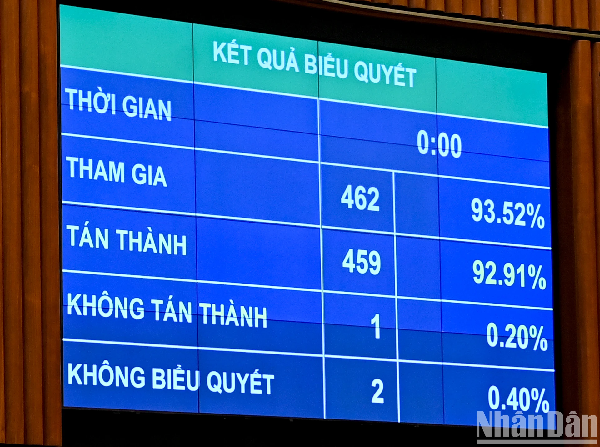 Kết quả biểu quyết điện tử cho thấy, có 459 đại biểu tham gia biểu quyết tán thành (chiếm tỷ lệ 92,91%). Như vậy, với đa số đại biểu tham gia biểu quyết tán thành, Quốc hội đã chính thức thông qua Nghị quyết về giám sát chuyên đề việc triển khai thực hiện các Nghị quyết của Quốc hội về 3 chương trình mục tiêu quốc gia.