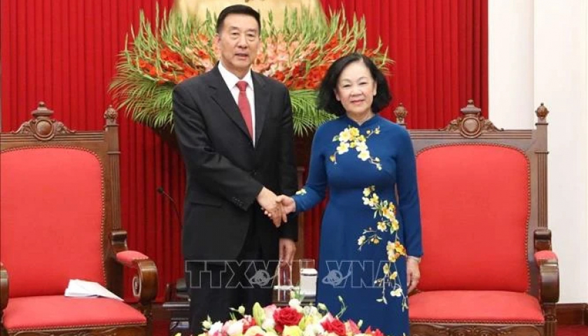 Đồng chí Trương Thị Mai, Ủy viên Bộ Chính trị, Thường trực Ban Bí thư, Trưởng Ban Tổ chức Trung ương tiếp Đoàn đại biểu Chính hiệp Toàn quốc Trung Quốc. Ảnh: Phương Hoa/TTXVN.