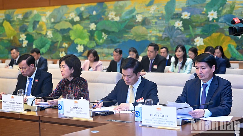 Các thành viên cấp cao Quốc hội Việt Nam dự buổi hội đàm. (Ảnh: DUY LINH).