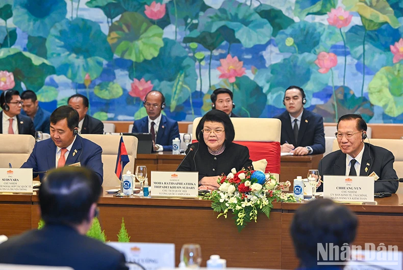 Chủ tịch Quốc hội Campuchia Samdech Khuon Sudary phát biểu tại buổi hội đàm. (Ảnh: DUY LINH).