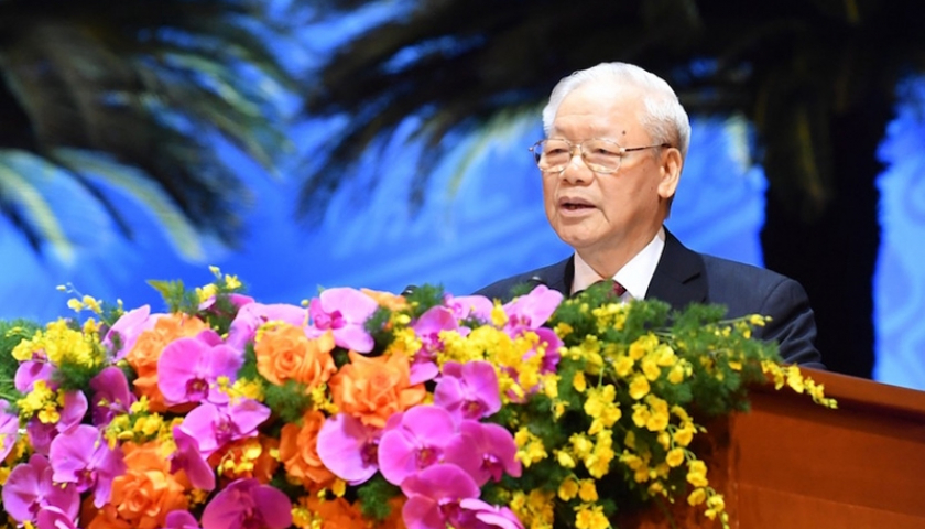 Tổng Bí thư Nguyễn Phú Trọng phát biểu chỉ đạo tại phiên trọng thể Đại hội XIII Công đoàn Việt Nam.