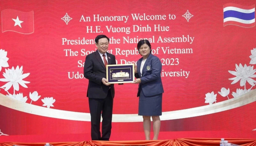 Chủ tịch Quốc hội chúc mừng Đại học Hoàng gia Rajabhat Udon Thani không chỉ là một trong những cơ sở giáo dục có bề dày lịch sử lâu đời hàng trăm năm, mà còn là trường đại học đang phát triển nhanh nhất của Thái Lan.