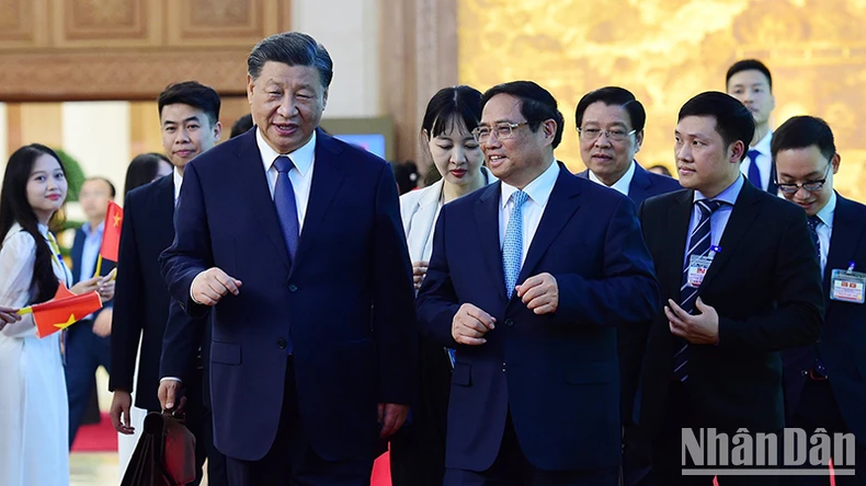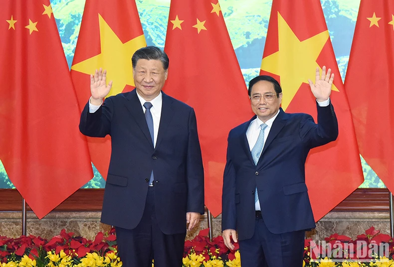 Thủ tướng Phạm Minh Chính khẳng định, Việt Nam coi phát triển quan hệ với Trung Quốc là yêu cầu khách quan, lựa chọn chiến lược và ưu tiên hàng đầu trong chính sách đối ngoại; nhấn mạnh những nhận thức chung quan trọng đạt được giữa hai đồng chí Tổng Bí thư trong chuyến thăm lần này, nhất là việc xác lập định vị mới cho quan hệ hai Đảng, hai nước, xây dựng “Cộng đồng chia sẻ tương lai Việt Nam-Trung Quốc mang ý nghĩa chiến lược” là dấu mốc lịch sử trọng đại, là định hướng quan trọng để đưa quan hệ hai Đảng, hai nước bước vào giai đoạn lịch sử mới, phát triển ổn định, lành mạnh và bền vững hơn.