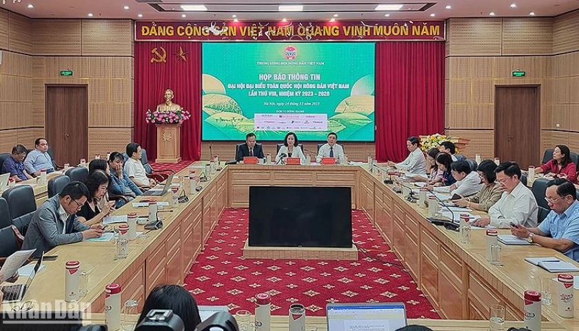 Đại diện lãnh đạo Trung ương Hội Nông dân Việt Nam cung cấp thông tin tại buổi họp báo.